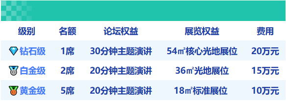 ✨钻石级专属:联合主办单位资格、全渠道品牌露出、资料装袋、椅背贴等尊享权益